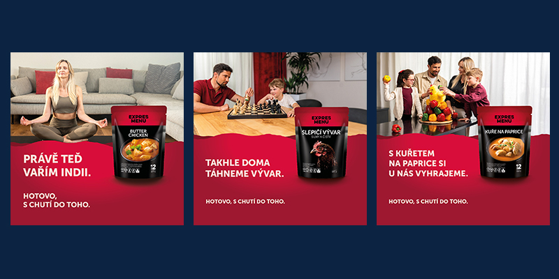 Pro českou značku hotových jídel jsme s chutí uvařili celou mediální a reklamní strategii na míru. Natočili jsme tři hlavní spoty pro kina a online na téma „co lidé vaří, když nevaří“. Máme na starosti viditelnost značky i na sociálních sítích.